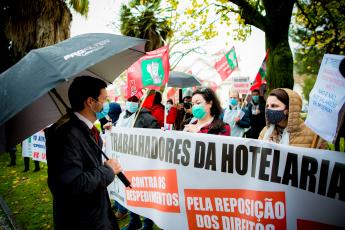 Manifestação dos trabalhadores da restauração, hotelaria e similares em frente ao Ministério do Trabalho, Lisboa